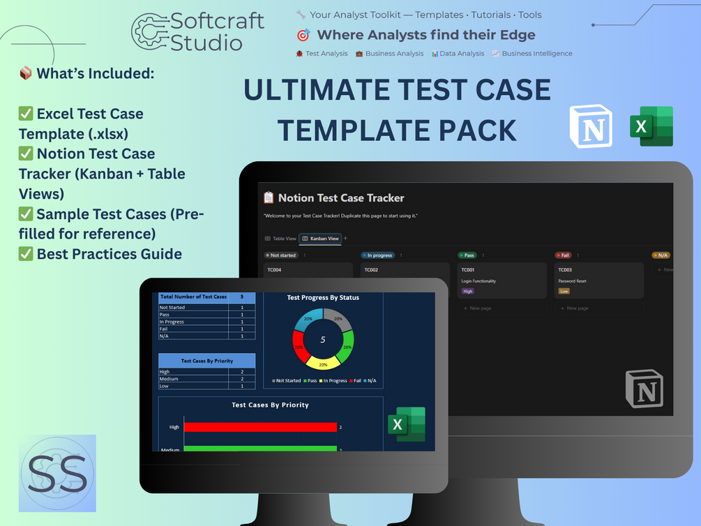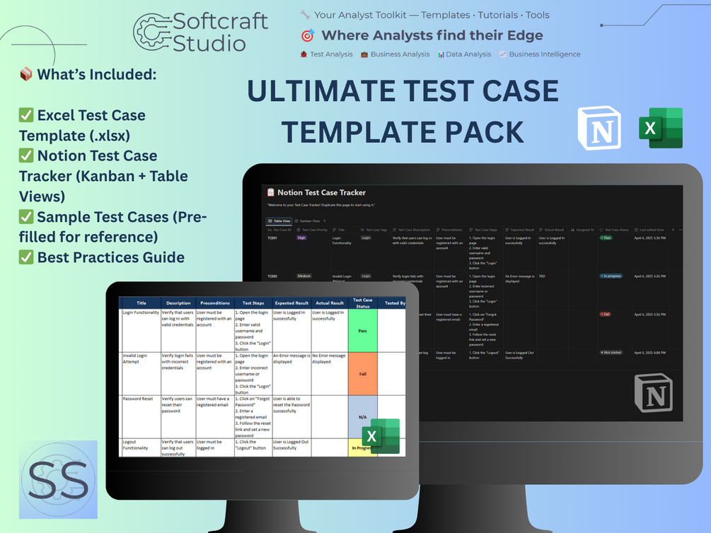 Everything a QA professional needs to write, track, and organize test cases β in both Excel and Notion. π― Save hours every sprint with this ready-to-use pack β built by testers, for testers.